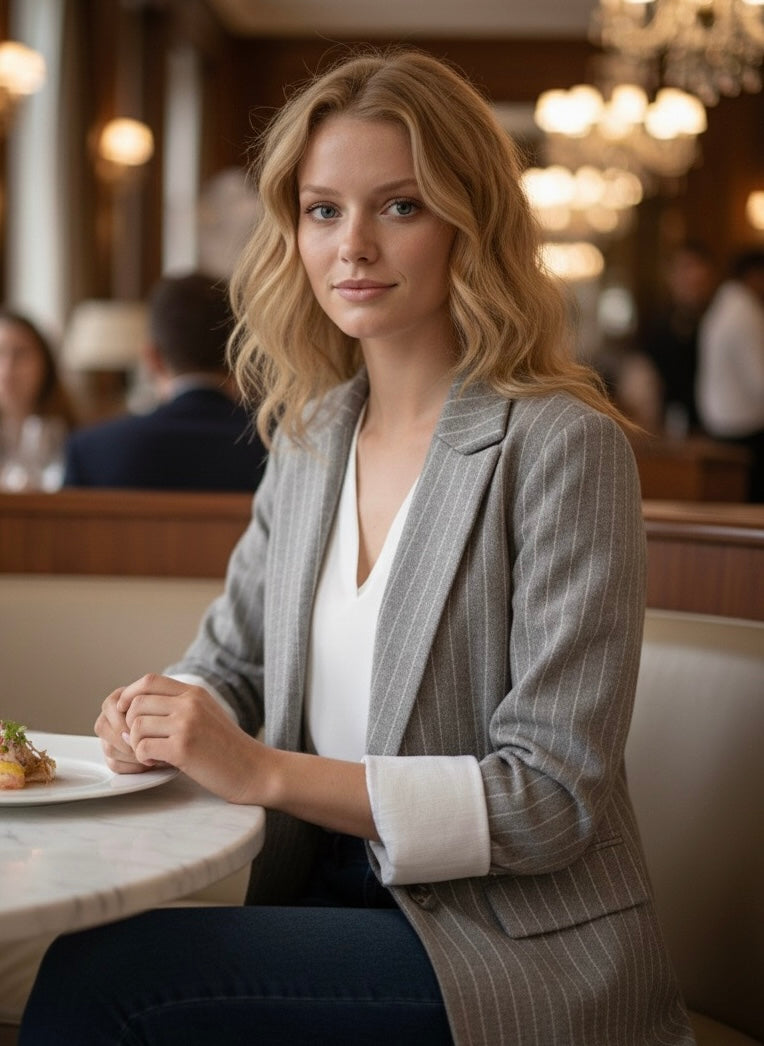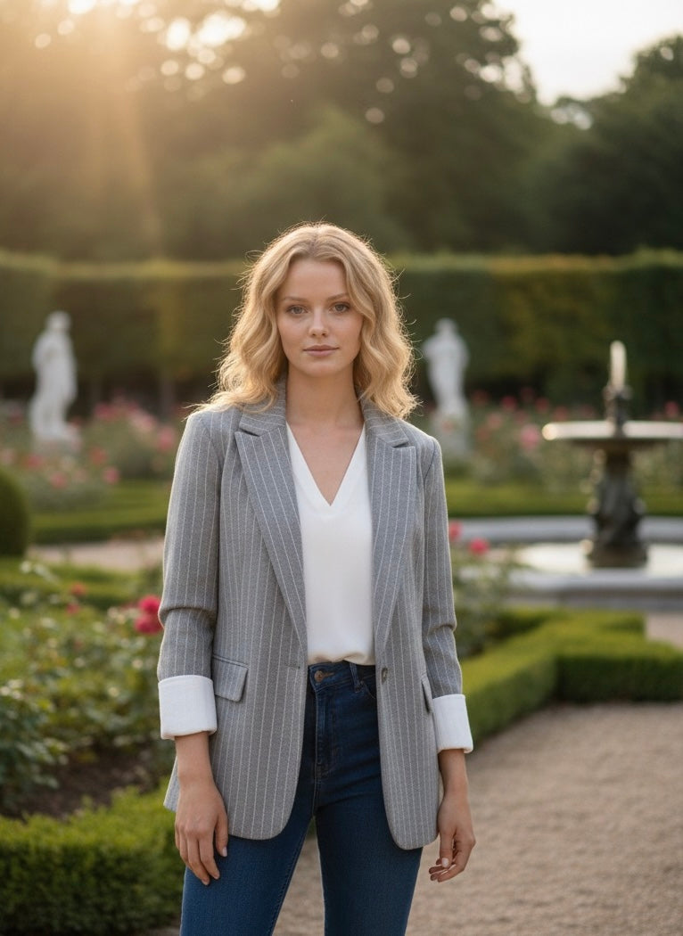 Blazer à rayure manches retroussées