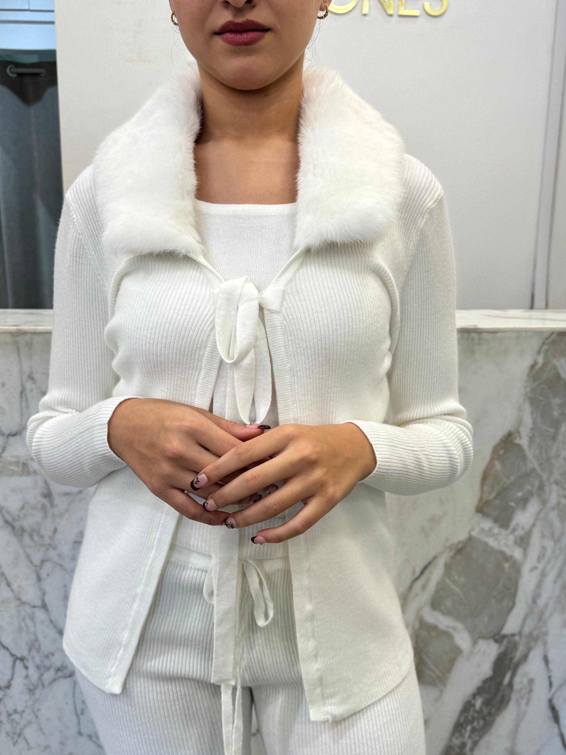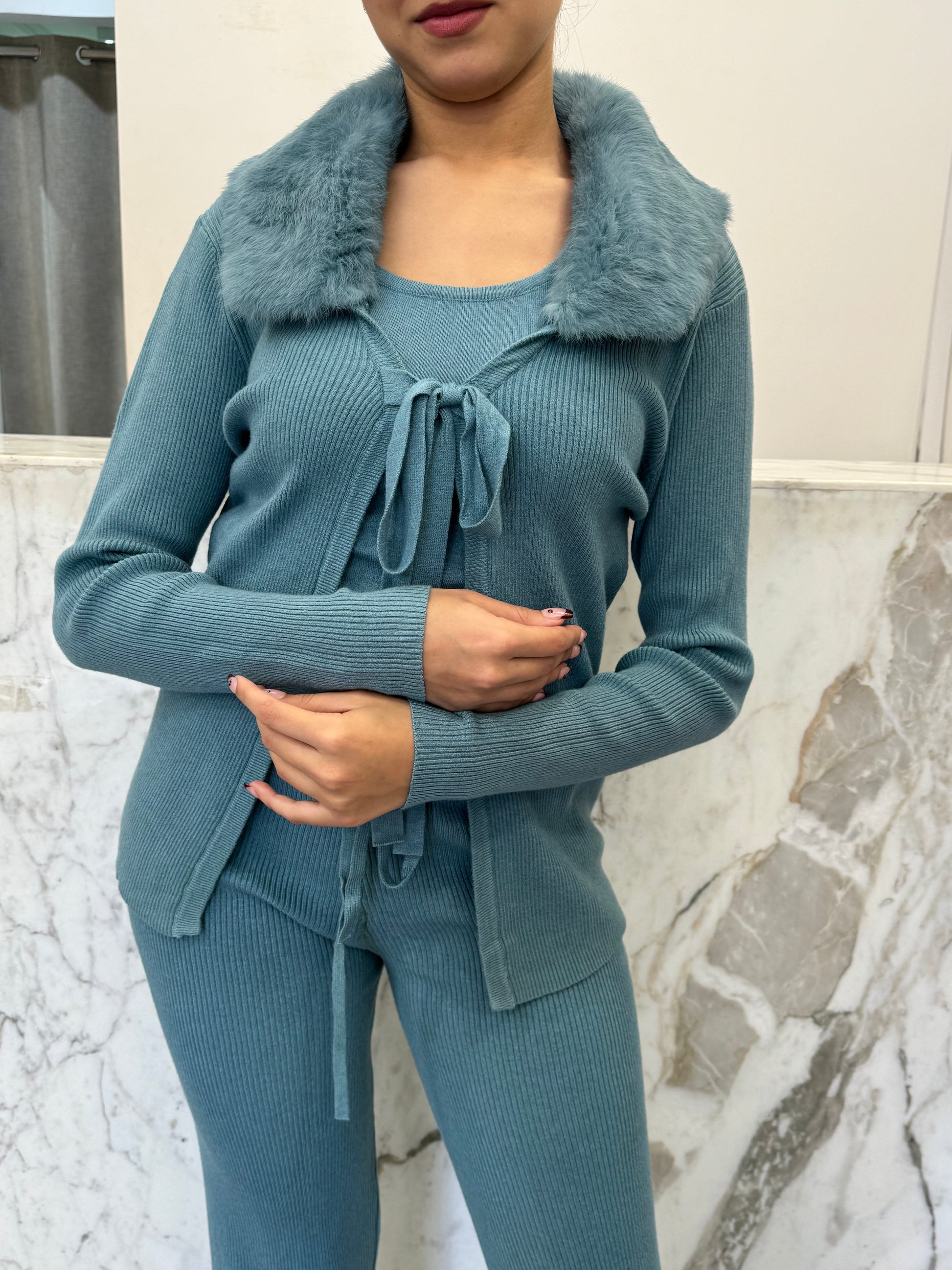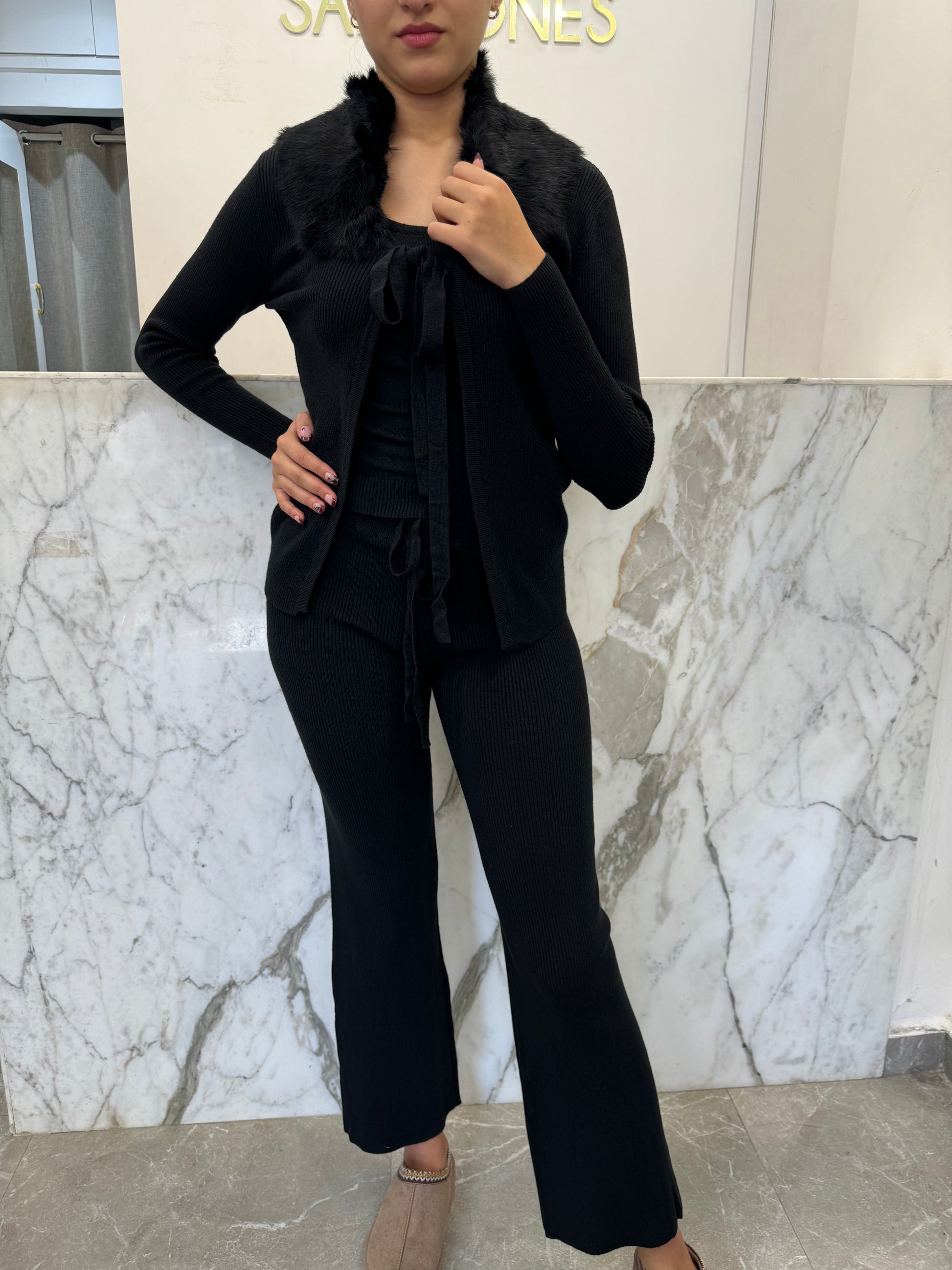 Ensemble constitué de trois pièces : débardeur, pantalon et veste.