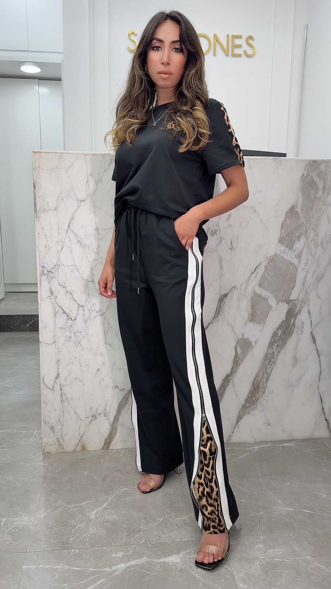 Jogging bi-matière léopard