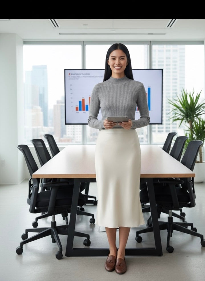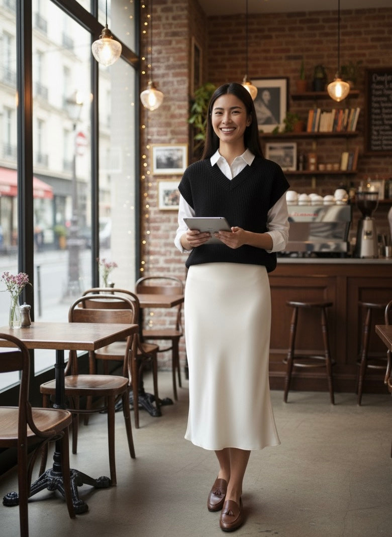Jupe satin longue évasée