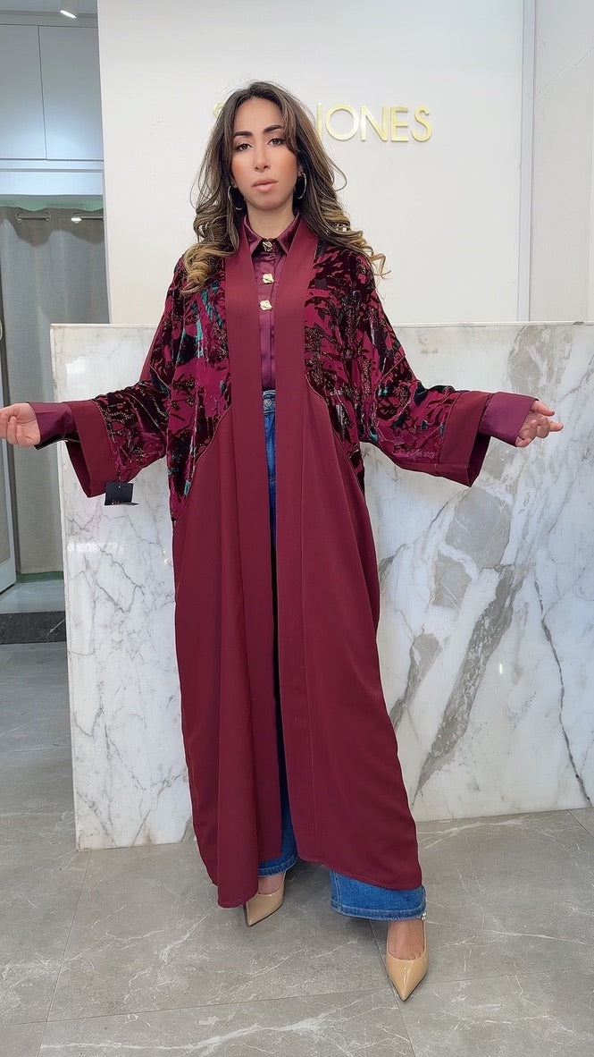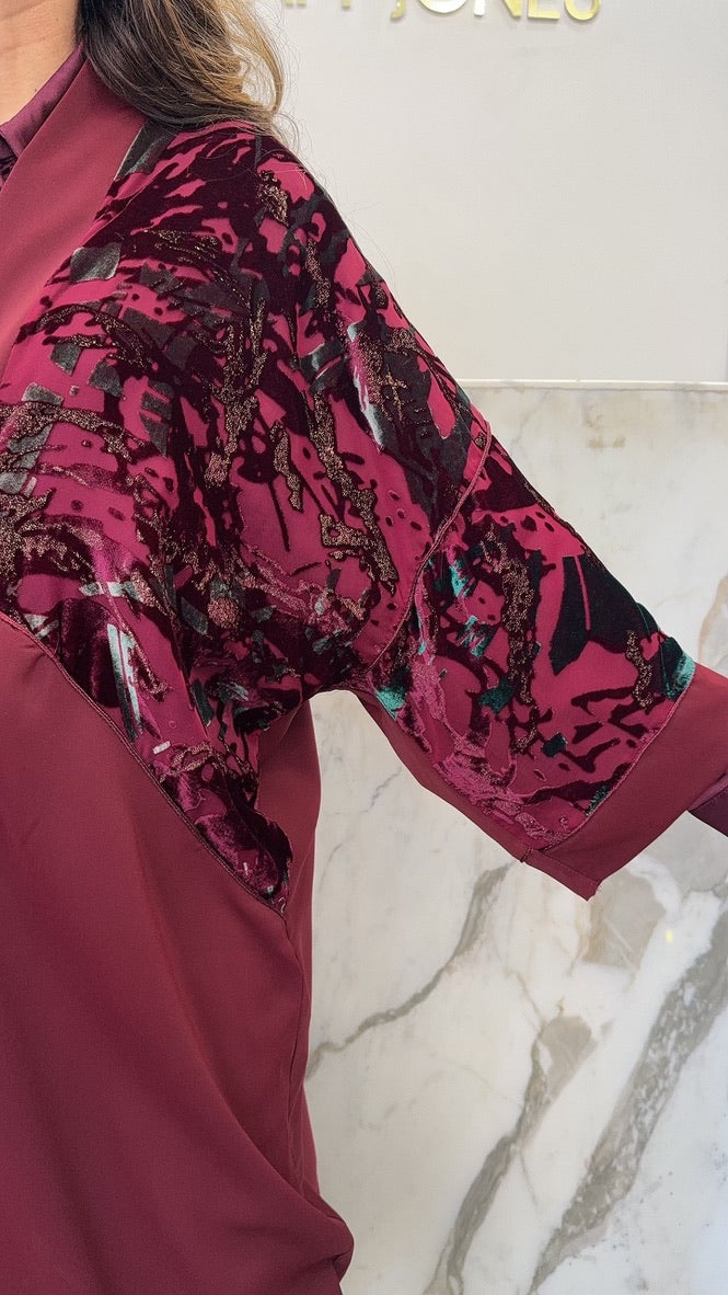 Kimono bordeaux fleurs Kim gold