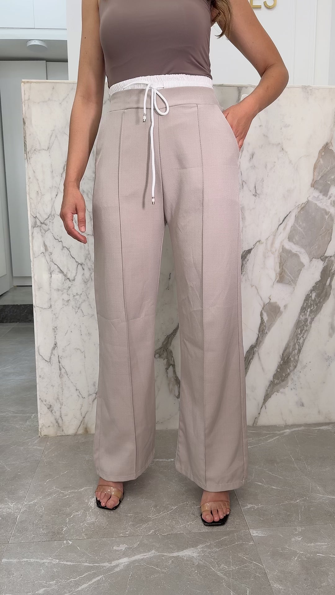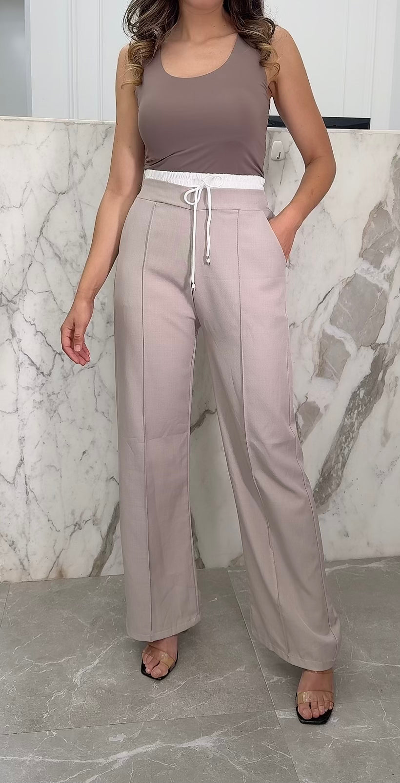 Pantalon droit, bandes blanche à la taille, lacets ajustables