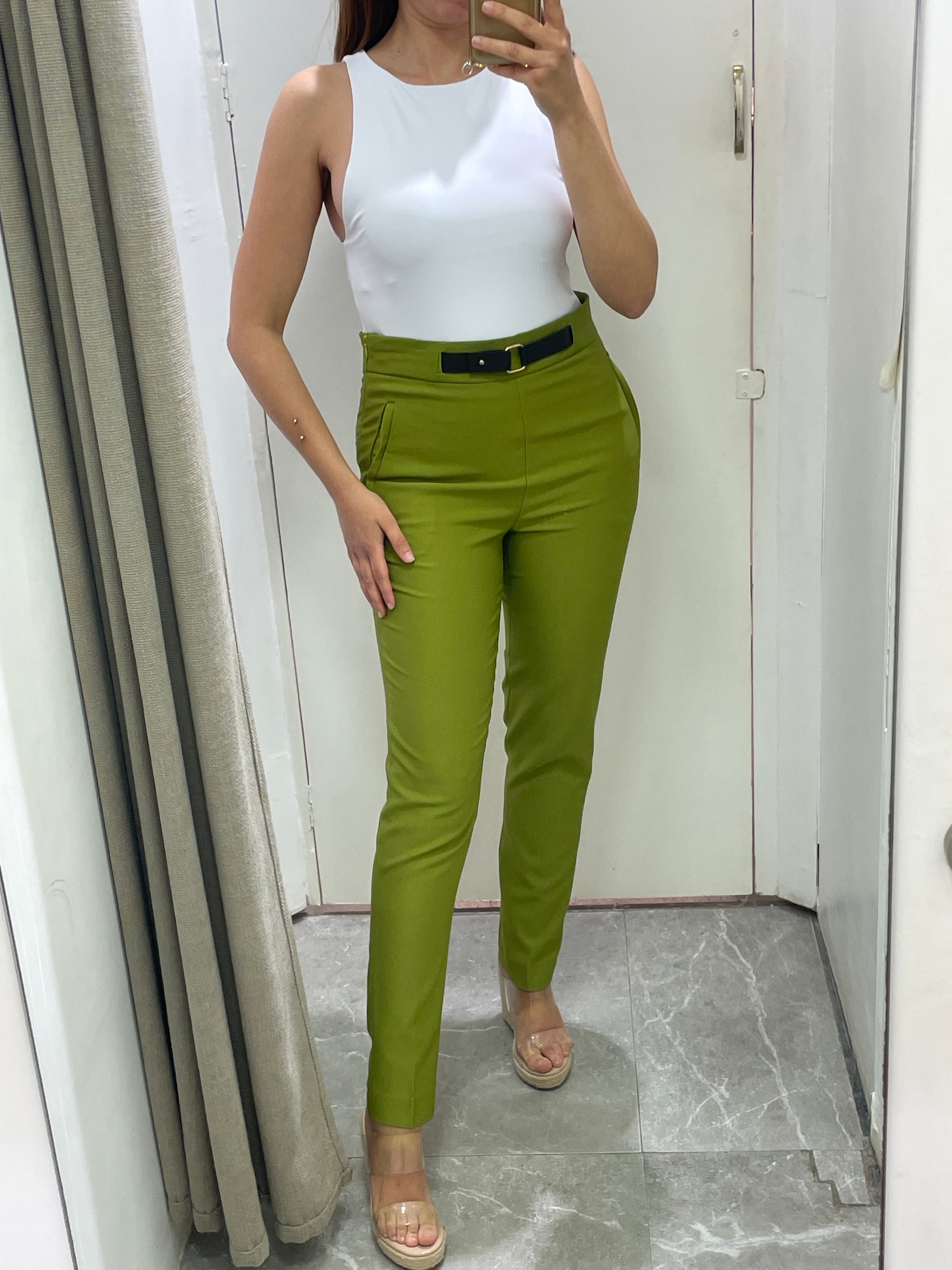 pantalon slim poches vert