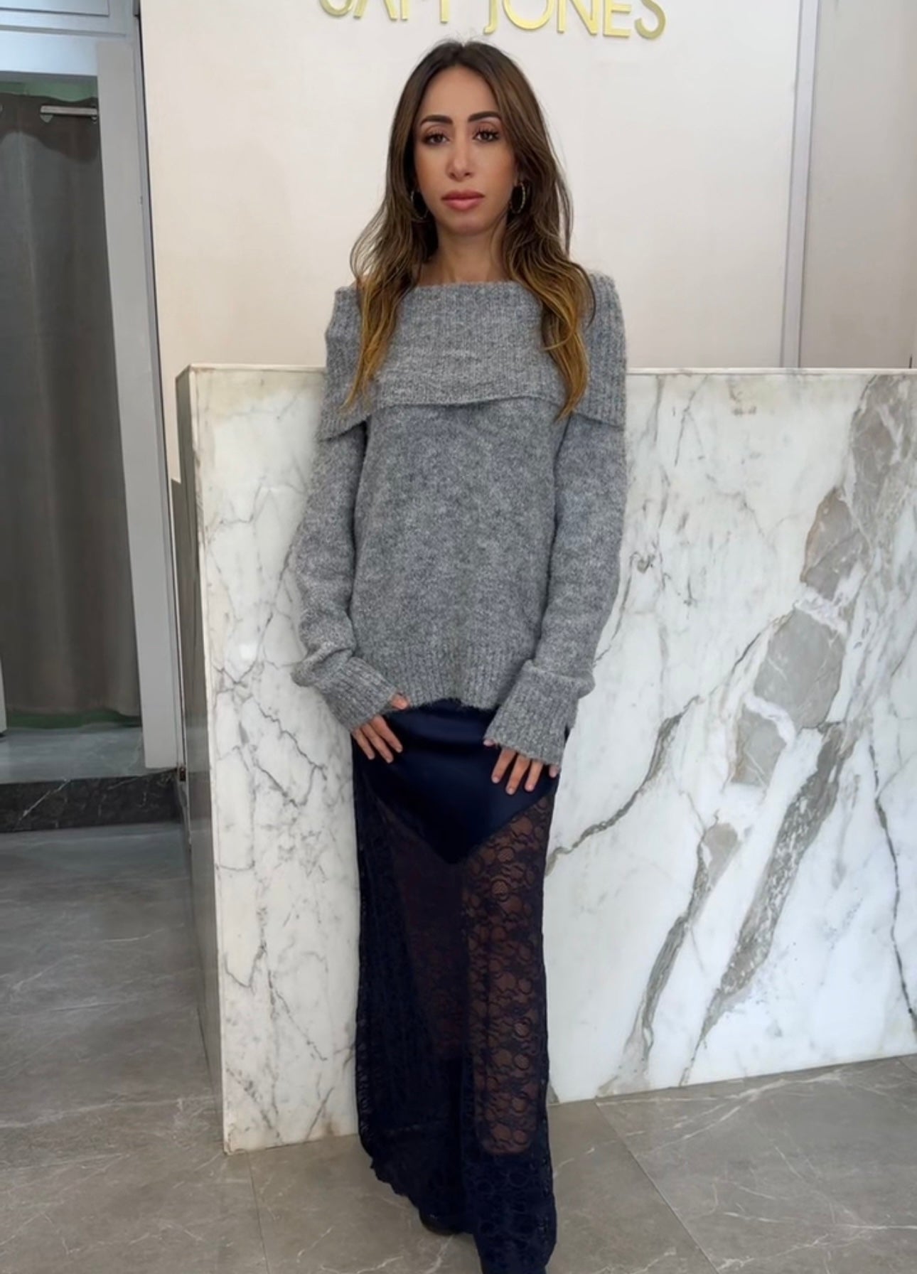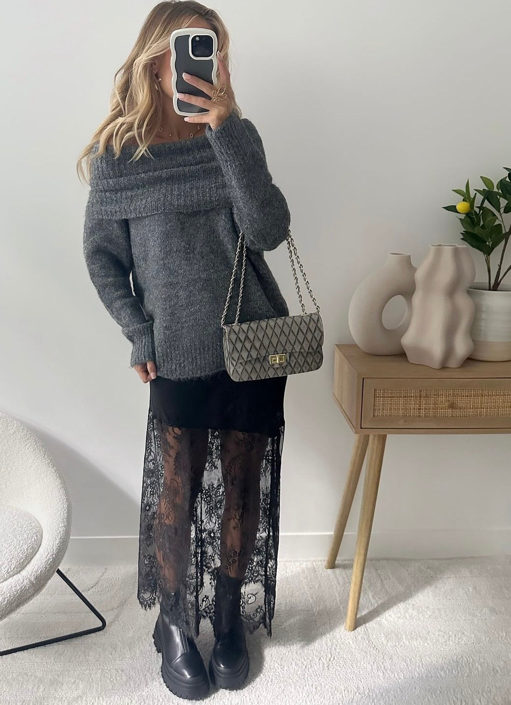 Pull à porter de plusieurs manières : col remontée ou à descendre sur les épaules