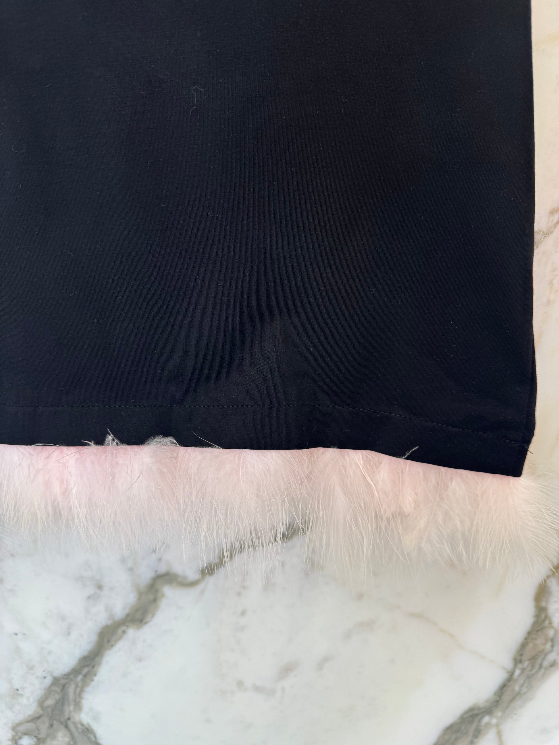 T-shirt 100% cotton, avec plumes en bas en rose.